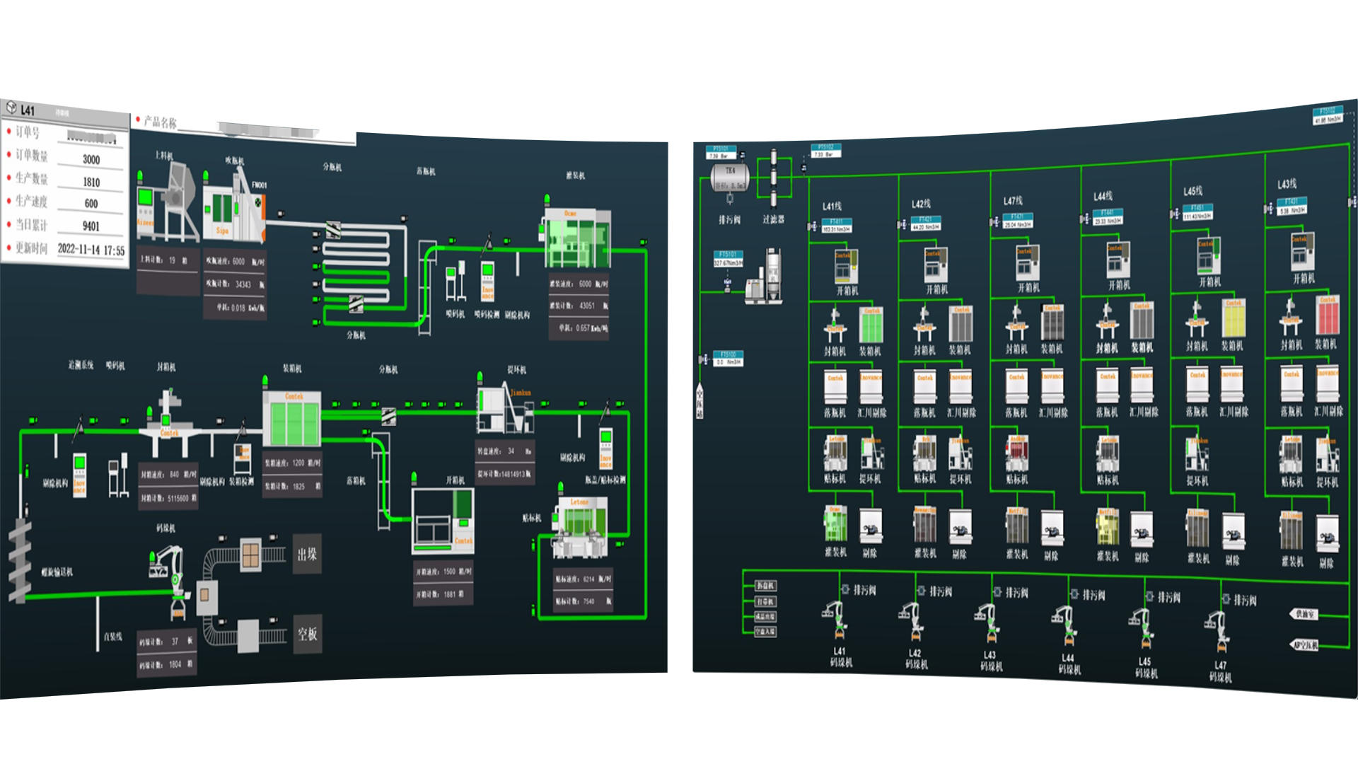 產(chǎn)線各個設(shè)備生產(chǎn)數(shù)據(jù)及報警狀態(tài)一目了然