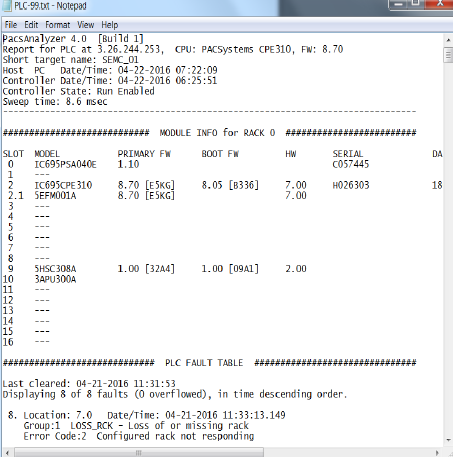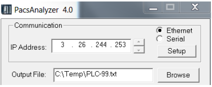 打開PacsAnalyzer軟件,輸入以太網(wǎng)模塊的IP地址,配置故障表輸出的路徑(.txt文件)