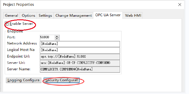 打開Cimplicity工程屬性窗口,激活OPC UA: