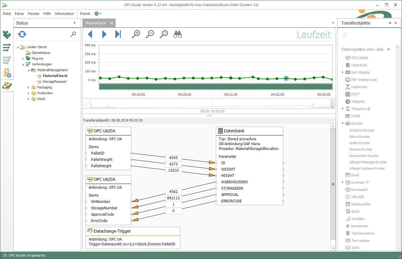 將外部應用程序連接到 SAP HANA ?的 過程與其他關(guān)系數(shù)據(jù)庫非常相似。使用 OPC Router的 SAP HANA ? 插件,可以以圖形方式配置與 HANA 數(shù)據(jù)庫的連接。借助其插件,OPC Router可以將數(shù)據(jù)寫入數(shù)據(jù)庫、更改數(shù)據(jù)、從中讀取數(shù)據(jù)并調(diào)用 SAP HANA ?中的程序 。通過這些選項,結(jié)合 其他可用插件, 子系統(tǒng)可以輕松快速地集成到 SAP HANA ? 基礎架構(gòu)中。