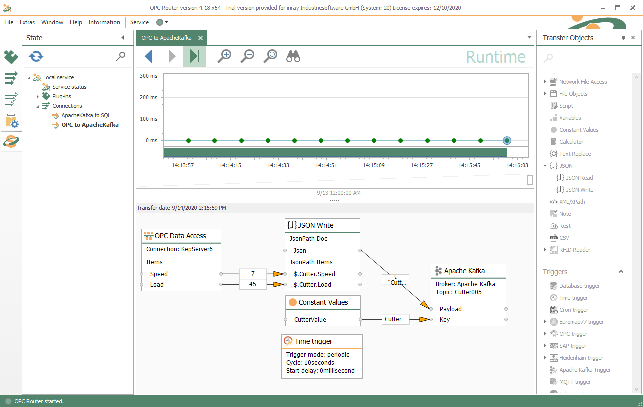 示例:從 KEPServerEX 檢索切割機(jī)的 OPC 數(shù)據(jù),將其轉(zhuǎn)換為 JSON 并發(fā)送到 Apache Kafka Broker