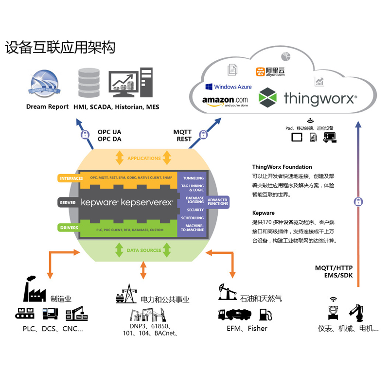 kepware具有豐富的通信驅(qū)動(dòng)程序,支持超150+的通信協(xié)議,這使得它能夠與市面上絕大部分主流PLC進(jìn)行連接。