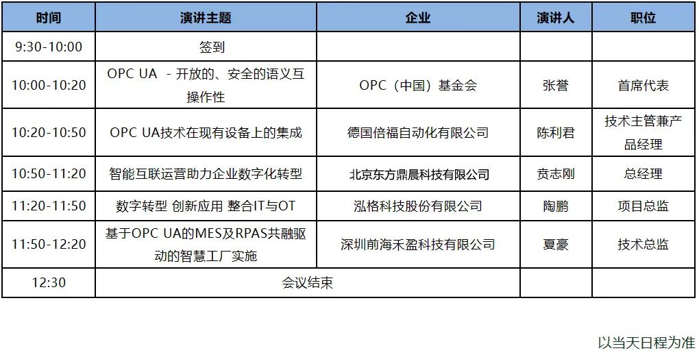 本次會議將重點討論OPC UA在幫助企業(yè)實現(xiàn)數(shù)字化、智能化中有哪些優(yōu)勢及價值;如何在消除數(shù)據(jù)孤島的同時,使工廠可以實現(xiàn)智能化柔性化;哪些方面可以體現(xiàn)通過全球標(biāo)準(zhǔn)OPC UA的互聯(lián)互通性以及針對復(fù)雜工藝的建模能力,來實現(xiàn)從底層到頂層的全面通訊,使CRM、PLM、MES等系統(tǒng)可以實現(xiàn)無縫對接等解決方案。