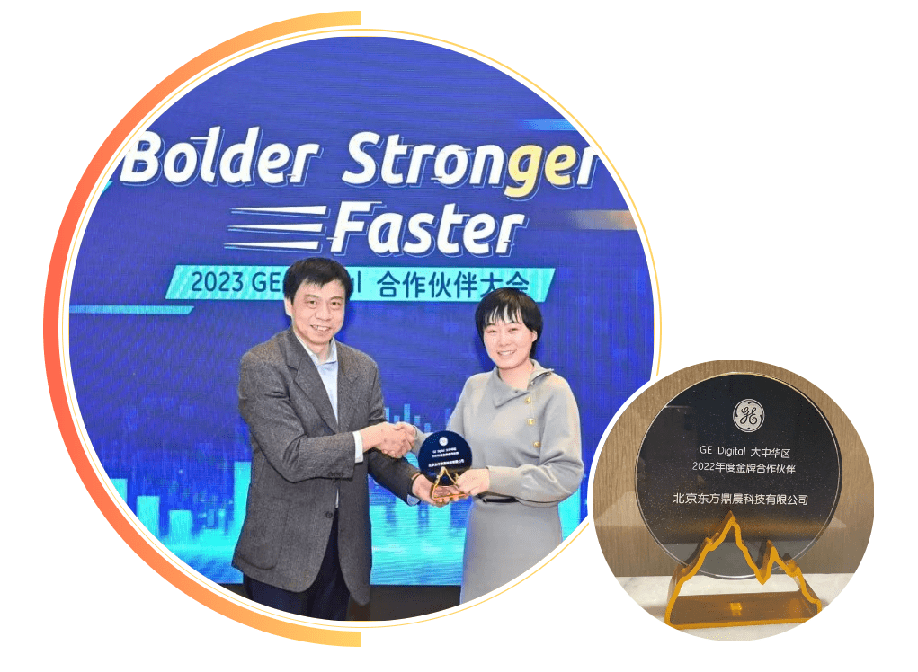 GE數字集團亞太區(qū)智能制造業(yè)務總經理夏鵬為東方鼎晨頒獎,授予東方鼎晨大中華區(qū)“年度銷售額冠軍”、“金牌合作伙伴”獎項。