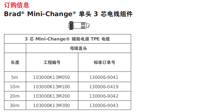 Brad? Mini-Change? 7/8" 輔助電源基礎設施組件,即插即用的 3 芯配電基礎設施可通過 7/8" 標準接頭來實現(xiàn) IP67 設備的互連,也稱為 Mini-Change?。